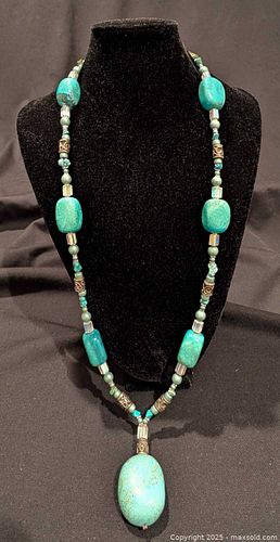 2 Turquoise Pendants, Sterling