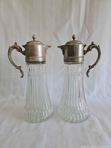 Large Glass and Silver Plate Carafes