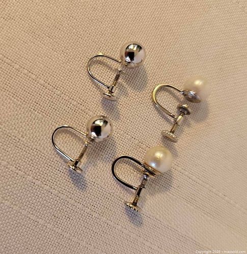 Two Pairs of 14K White Gold Earrings