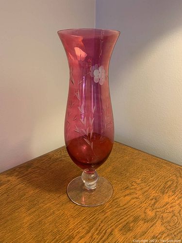 Cranberry Glass Candle Holder