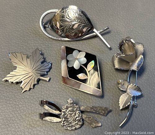 (6) Vintage Sterling Silver/Silver Brooches