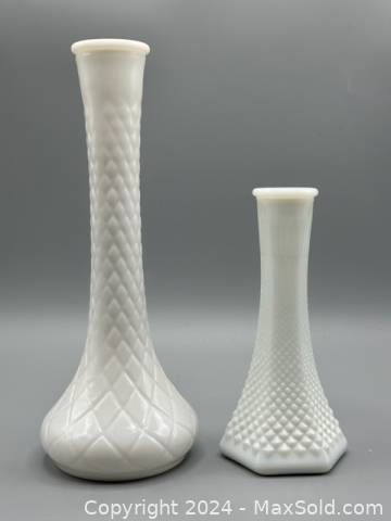 White Milk Glass Bud Vases - Lot of 2