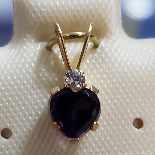 14K Gold Amethyst & Diamond Pendant