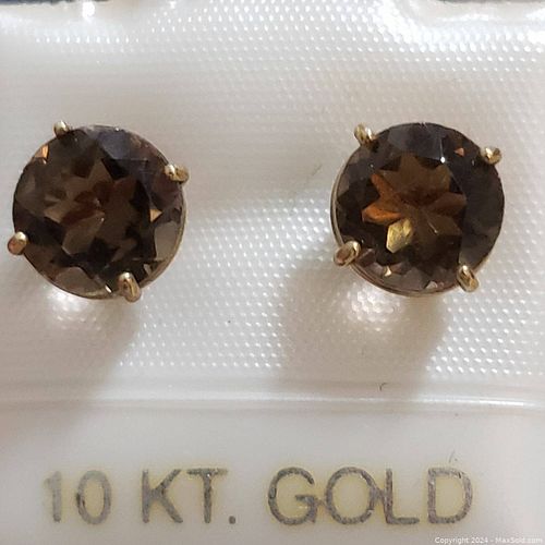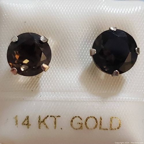 14K White Gold Smokey Quartz Earring
