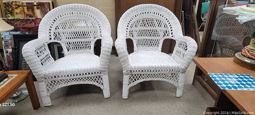 2 Vintage MCM White Wicker Armchairs