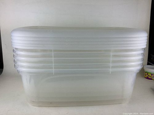 Lot of 5 Clear Plastic Bins With Lids
