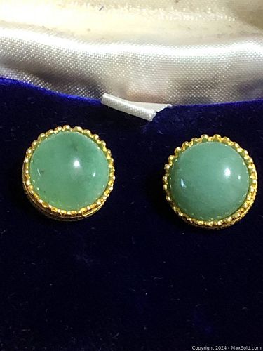 MMA Jade Earrings Marked 585 DF On Post