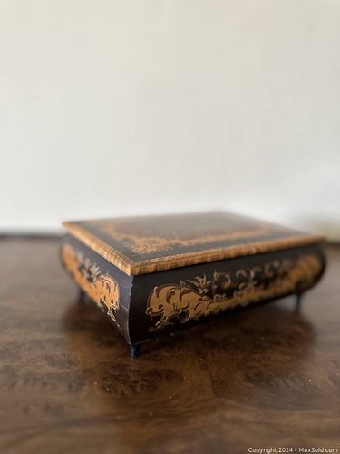 Vintage Wooden Trinket Box Red Interior