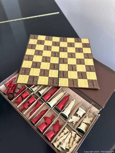 Vintage Ornate Carved Folding Chess Set