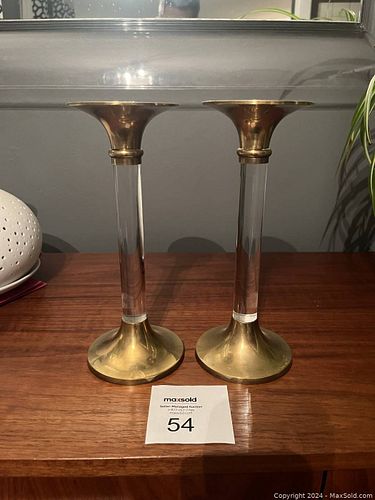 Vintage Lucite and Brass Candleholders