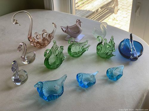 2 Glass Rooster Figurines