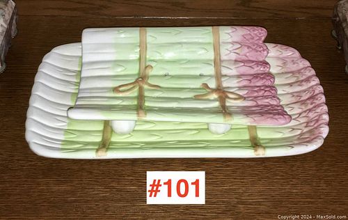 POTTERY ASPARAGUS SERVER w/ UNDER PLATE