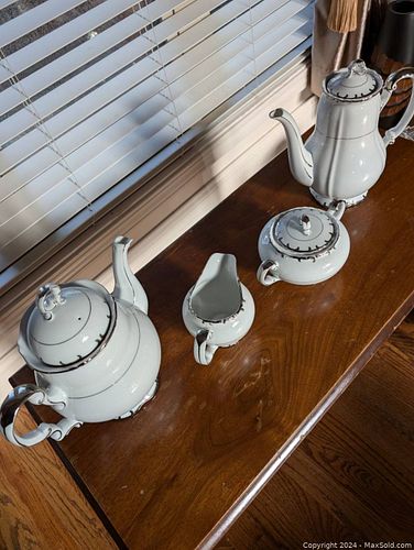 Thin China Coffee & Tea Set-silver trim