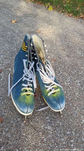 Cool Vintage women's ice skates in denim