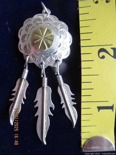 Silver Pendant with Feathers Mexico