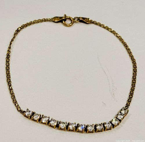 10K Yellow Gold Zircon Bracelet - Marked