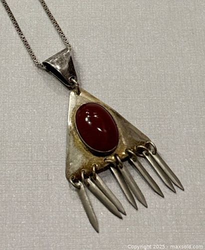 Vintage 925 Silver Amber Necklace - Marked