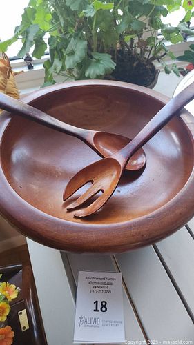 MCM Wooden Salad Bowl, Spoon & Fork