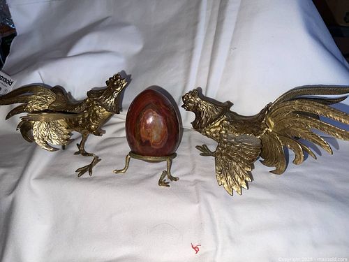 Brass Roosters and Stone Egg B