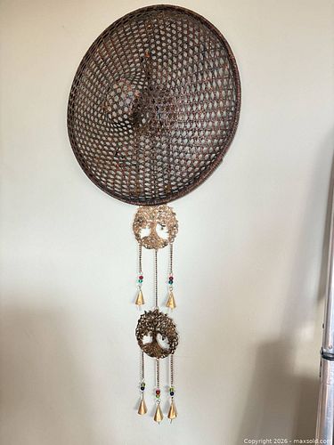 Aged Copper-Tone Metal Wind Chime Wall Hanging