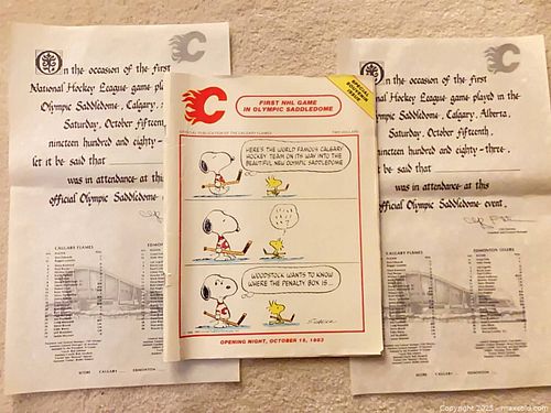 Calgary Flames first game in Olympic Saddledome souvenirs
