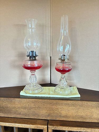 Lot of 4 Antique/Vintage Glass Oil (Hurricane) Lamps