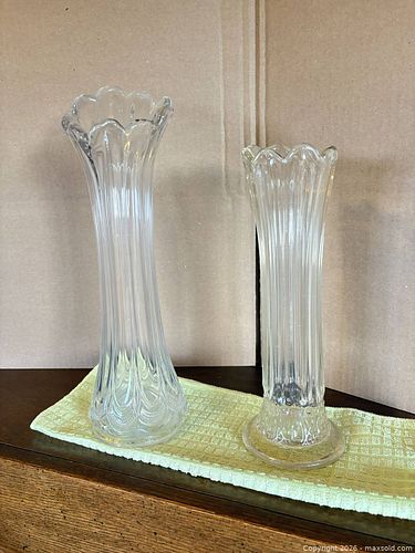 Pair of Clear Glass Bud Vases with Vertical Ribbing