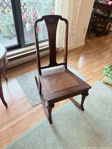Victorian Revival Solid Wood Rocking Side Chair with Cane Seat