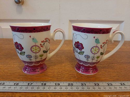 Shabby Chic Bone China Pedestal Tea Cups