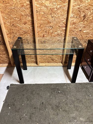 Glass Console Table with Lower Shelf and Black Wood Legs