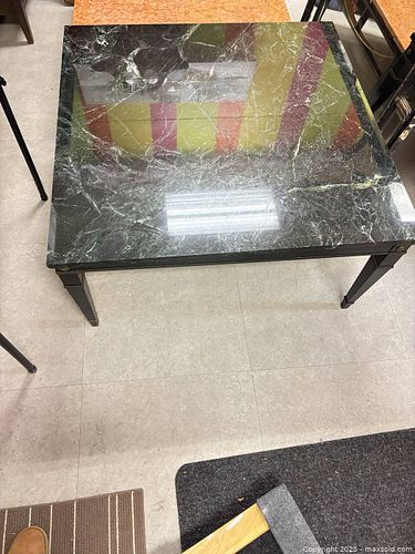 Neoclassical Coffee Table: Green Marble Top, Black Ebonized Wood Base