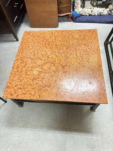 Red-Orange Marble Coffee/Low Center Table with Painted Metal Base