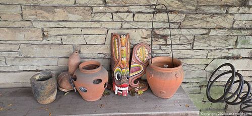 Terracotta Hanging Pots & Carved Wooden Mask