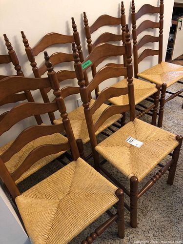 Lot of 6 Ladder-Back Dining Chairs, Wood Frame, Medium Brown