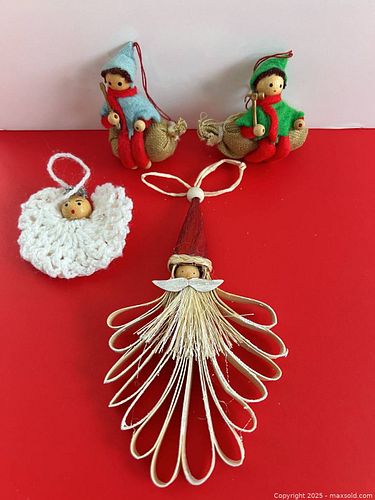 Lot of 4 Handmade Vintage Folk Christmas Ornaments