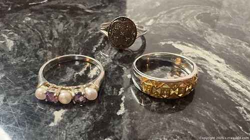 Lot of 3 Vintage Sterling Silver Fancy Colorful Rings Gemstones Sz 7, 8, 9 Ring