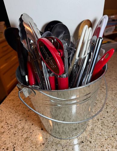 Pail of Serving Utensils A