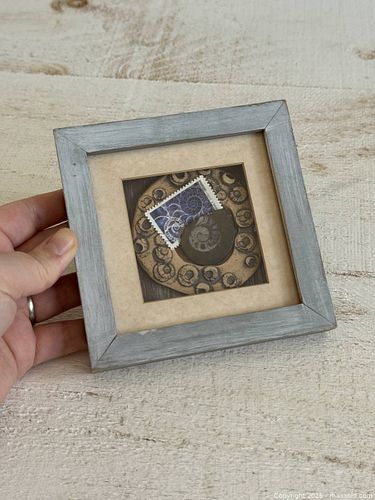 Small Hand Crafted Shadow Box with Pottery, Stamp and Shell Fossil - Layered Art Collage in Wood Frame
