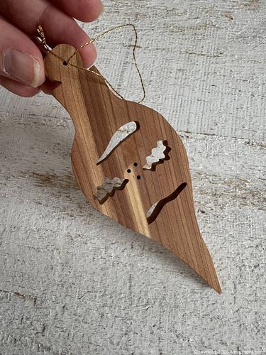 Small Hand Crafted Wooden Ornament - Wood Natural Christmas Bulb Decorative Hanging Art