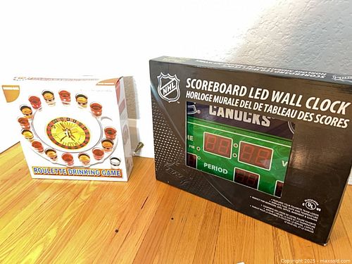 NHL LED Scoreboard Wall Clock & Roulette Shot Glass Game (Boxed)