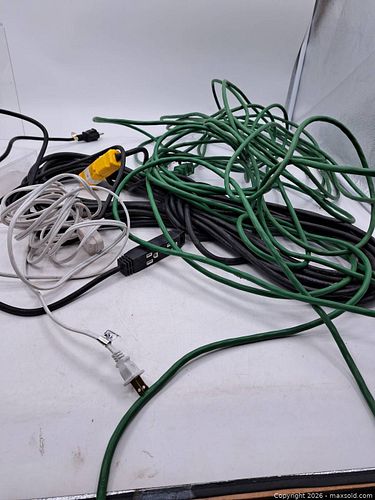 Lot of Assorted Extension Cords and Power Cables, Various Colors