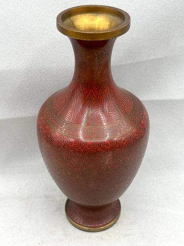 Chinese Red Cloisonné Vase with Flared Lip, Republic Period – 7"