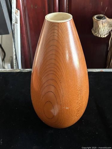 MCM Vintage Tall 11.5" Teak Wood Vase