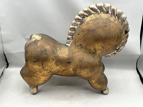 Mid-Century Modern Italian Gold & Silver Ceramic Horse Sculpture (After Russel Wright)