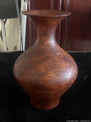 Vintage Turned Wood Vase – Signed “AC” – 8”