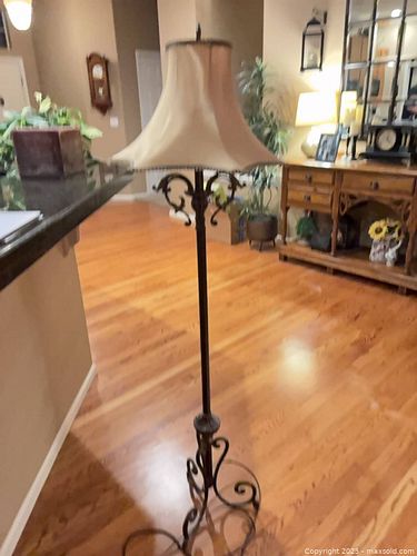 Antique Bronze Floor Lamp with Fabric Shade, lamp socket needs replaced