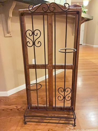 Freestanding Rustic Wine Bottle Rack with Iron Scrollwork