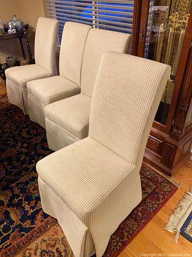Set of 3 good Slipcovered Parsons Dining Chairs, Cream Striped 1 needs fixed