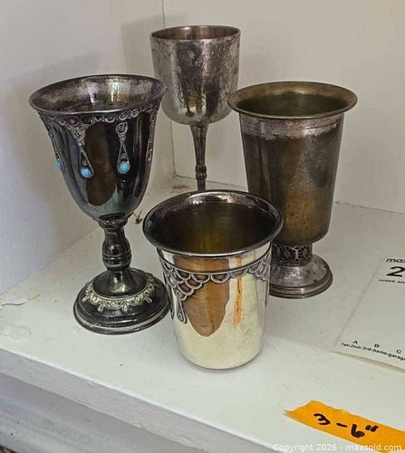 3 Sterling Kiddish Cups & More