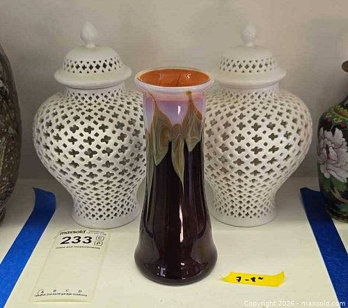 Art Reed Signed Glass Vase and Ginger Jars
